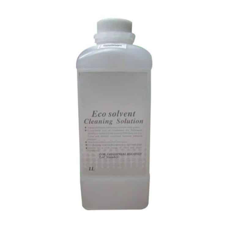 Universal cleaning agent for solvent/eco-solvent-based printing inks. Suitable for cleaning the print heads and all other machine components in contact with the ink.