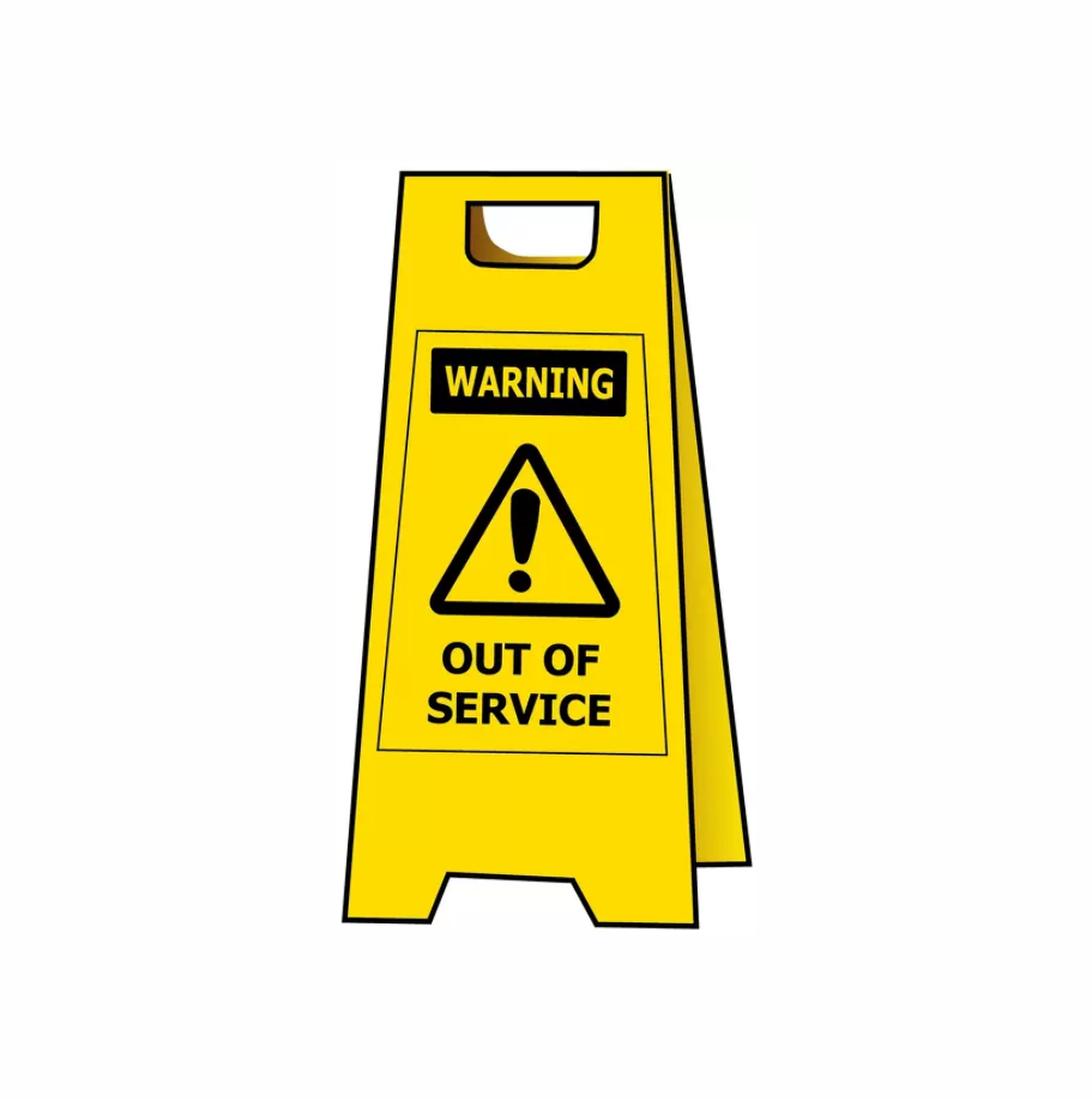 OUT OF SERVICE-YELLOW PLASTIC A-FRAME FLOOR STAND – SAFETY SIGNS